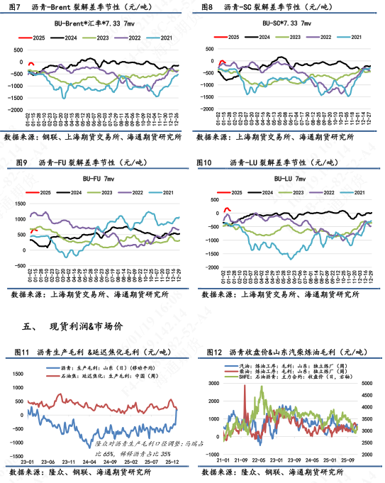 2.远月则是基于全球供需差改善、国内开工旺季以及马瑞油填补的逻辑,所以06合约也具备逢低看多的潜力。如若在当前宏观脉冲落下帷幕的基础下,原油市场有望回归较为宽松的基本面,沥青则会被向下带动,考虑到Q1原油基本面过剩和国内马瑞油供应和沥青库存尚可用至2月底,则推荐3-6反套逻辑,同时可以根据行情选择做多裂解差。